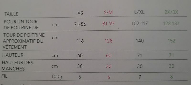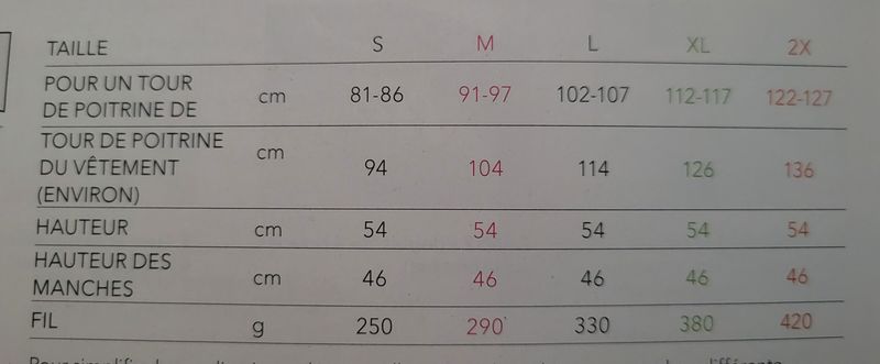 21 – Pull à empiècement circulaire tailles S – M – L – XL ou du 98 cm au 117 cm de tour de poitrine