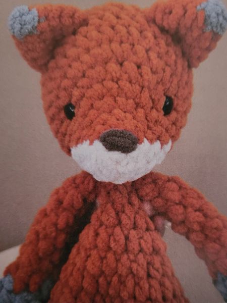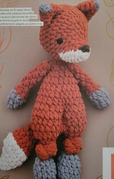 On termine par ce petit chou, j’ai nommé le renard ! Il est réalisé en fil chenille, ses jambes sont nouées.