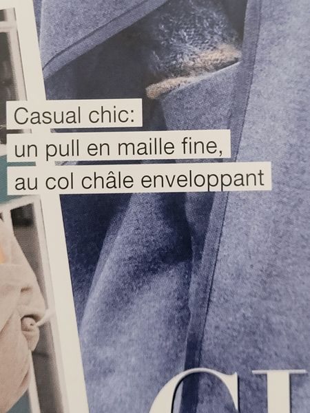 Les prémices de l’automne avec ses températures plus fraîches imposent une petite laine. Quoi de mieux qu’un pull avec un col châle enveloppant.