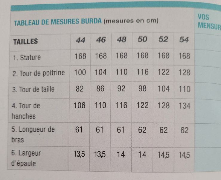 6 – Tailles 44 – 46 – 48 – 50 – 52