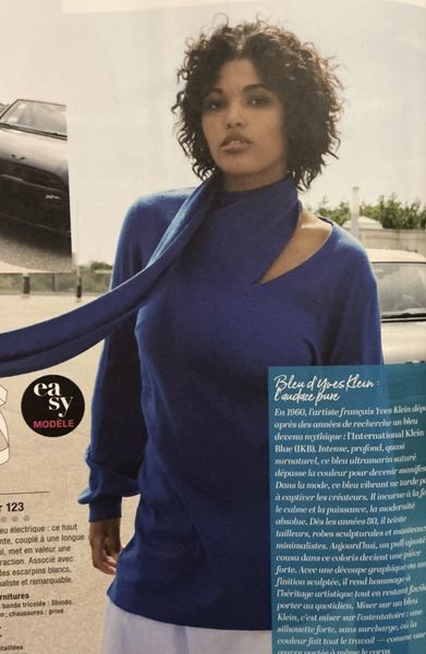 Avez-vous remarqué comme la couverture est épurée ? Le résumé essentiel de la revue se trouve sur le bandeau de côté. Nous y apprenons, qu’il y a 33 modèles dans ce numéro. Mais aussi la présence de pas à pas illustrés. Mais ce que je préfère, c’est la mention des cinq modèles Curvy, donc des grandes tailles.