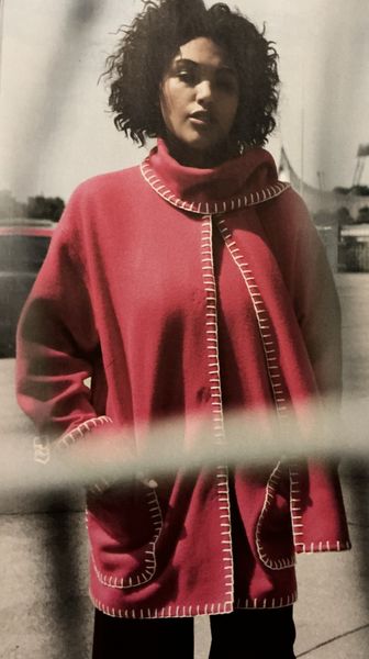 J’aime beaucoup les vestes avec écharpe incorporée comme celle-ci. Un modèle simple, mais efficace. Un peu moins fan du point de feston apparent.