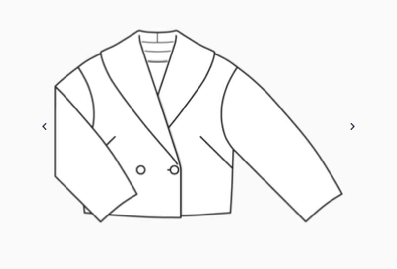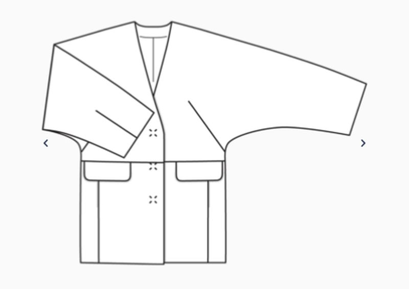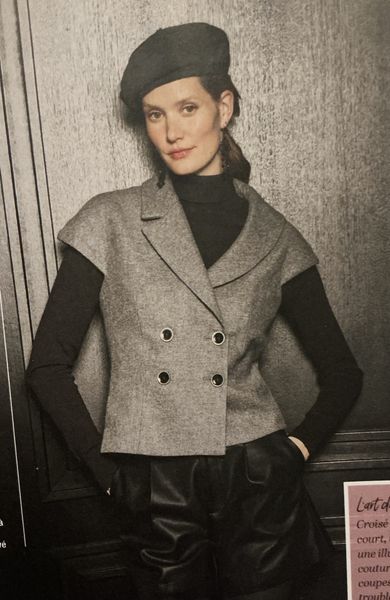 Pour ce dernier coup de cœur, je n’ai pas vu au début l’asymétrie du col. D’un côté col châle et de l’autre tailleur. Il comporte des petits mancherons à même.
