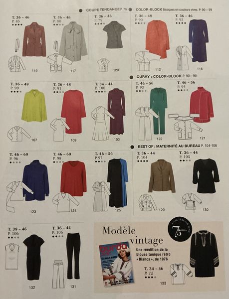 Le patron vintage ne me plait pas. Les grandes tailles vont jusqu’au 56 dont deux vont même jusqu’au 60. C’est une avancée significative donc je valide !