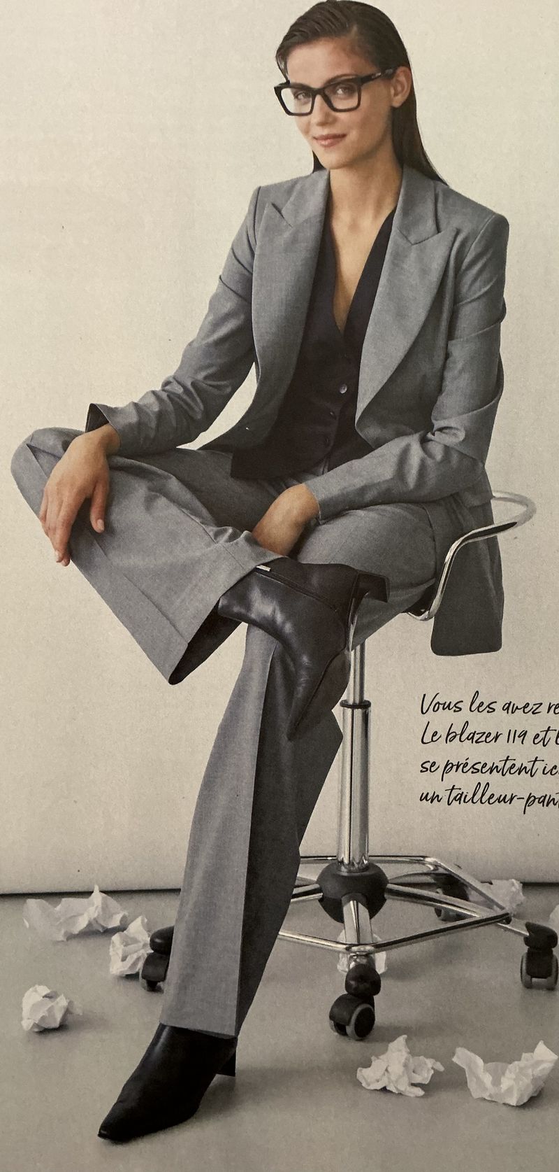 Le gris, fait sensation, parait-il. Personnellement, je l’ai banni de mon armoire. C’est fade, je veux de la couleur et des paillettes. Le gris est souvent synonyme de tailleurs, vestons, blazers pour un look élégant. Mais pour moi c’est une couleur triste.