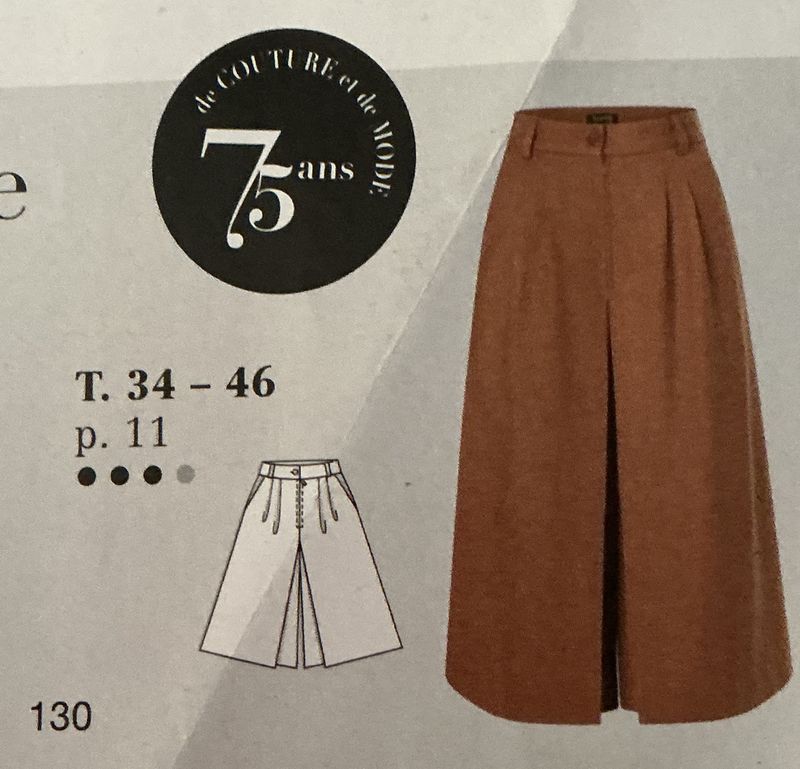 Je n’aime pas les jupes culottes, mais celle-ci me plait beaucoup. Car nous avons une « vraie » jupe avec un plus creux sur le devant abritant les jambes de la culotte. Elle possède des plis à la taille et des poches italiennes.