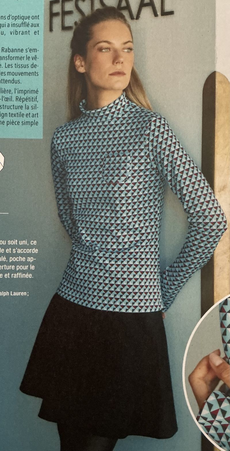 75 ans c’est l’année des 75 ans de la marque BURDA. Pour cette occasion, dans chaque numéro mensuel la rédaction nous offre un patron vintage déja paru dans la revue dans les décénies précédentes. Ici il s’agit d’un modéle des années 80.