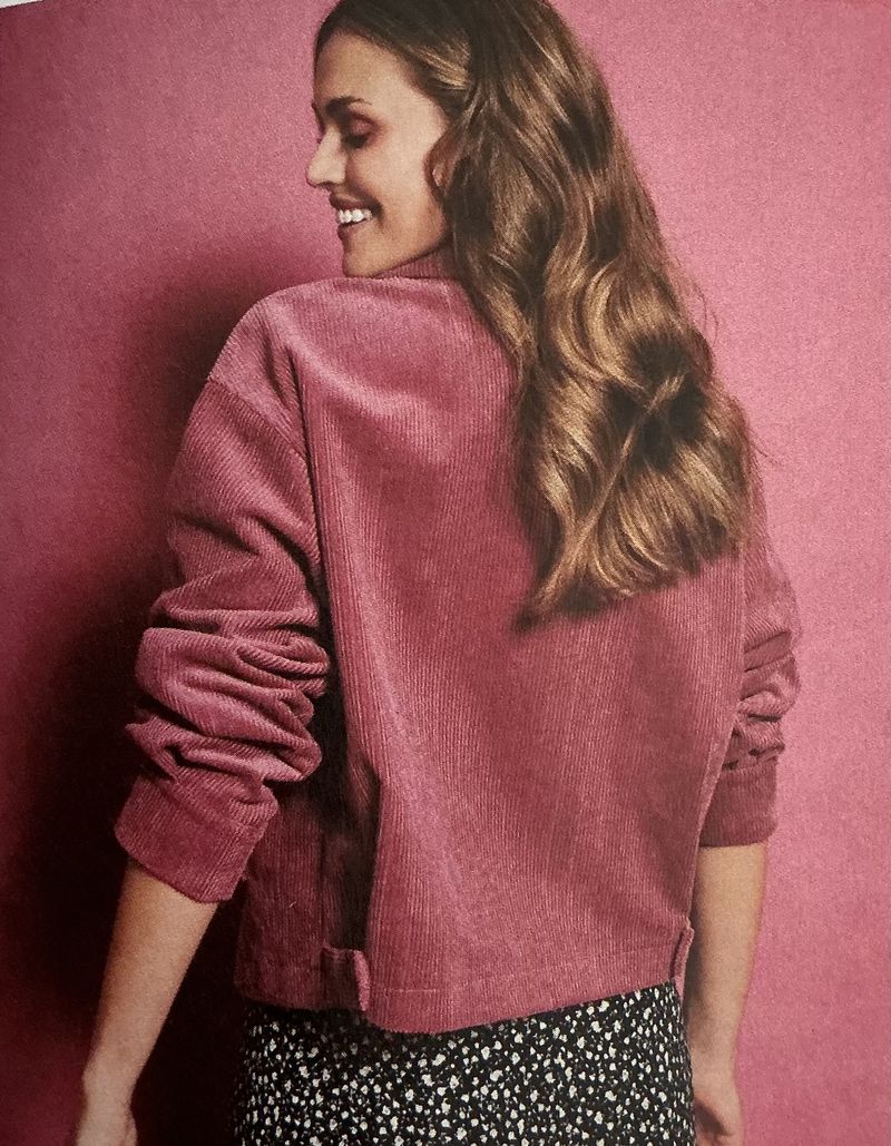 Les années 90 ce sont aussi les vestes en jean ou les surchemises. Comme celle présentée ici, il s’agit d’une version courte, avec des poches à rabats sur le devant. Le dos peut voir son ampleur rétréci à l’aide de pattes présentes dans le bas du dos. Les manches sont longues.