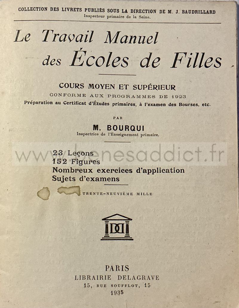 Bonjour, bonjour, les créatives. Aujourd’hui parlons écoles de filles, avec Le livre intitulé « Le travail manuel des écoles de filles, Cours moyen et supérieur » est un manuel scolaire écrit par M. Bourqui.