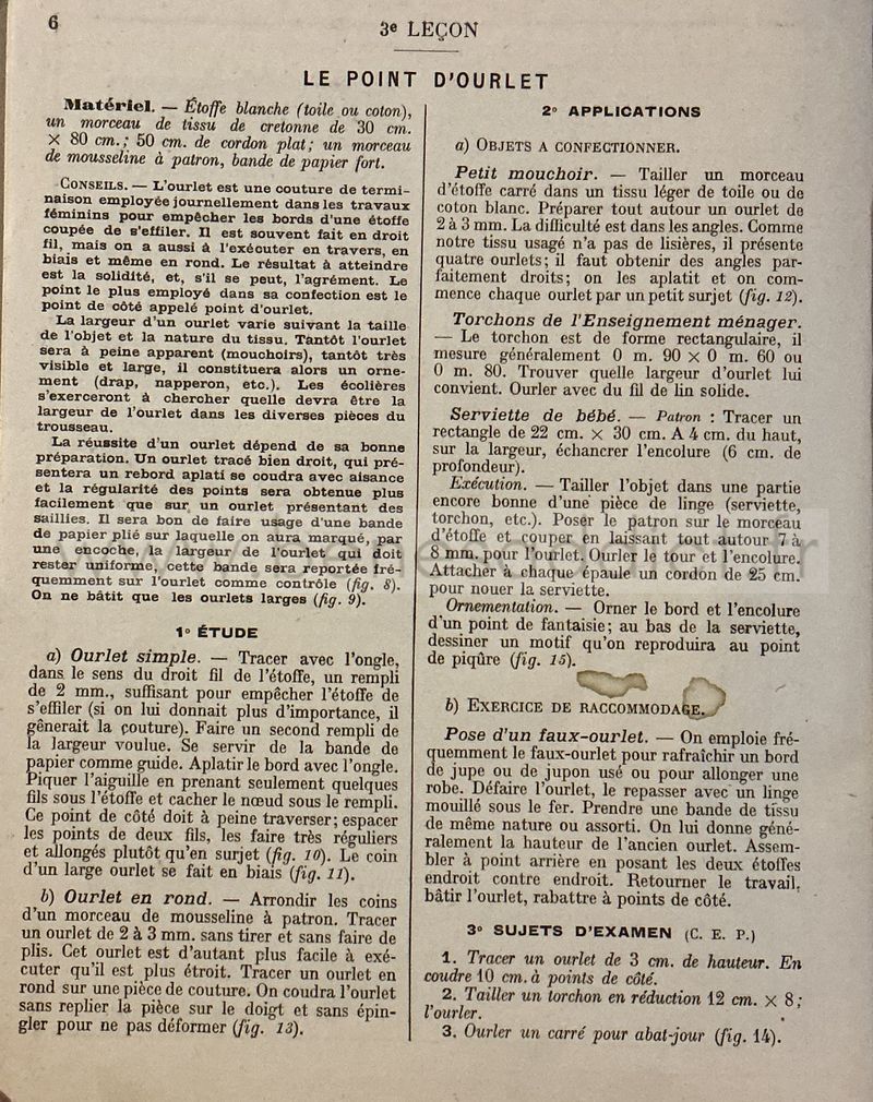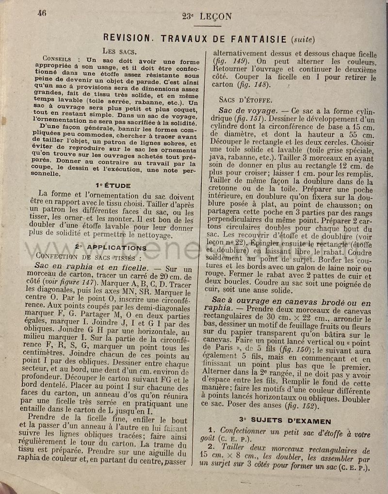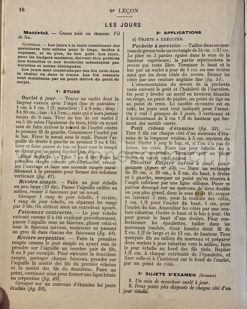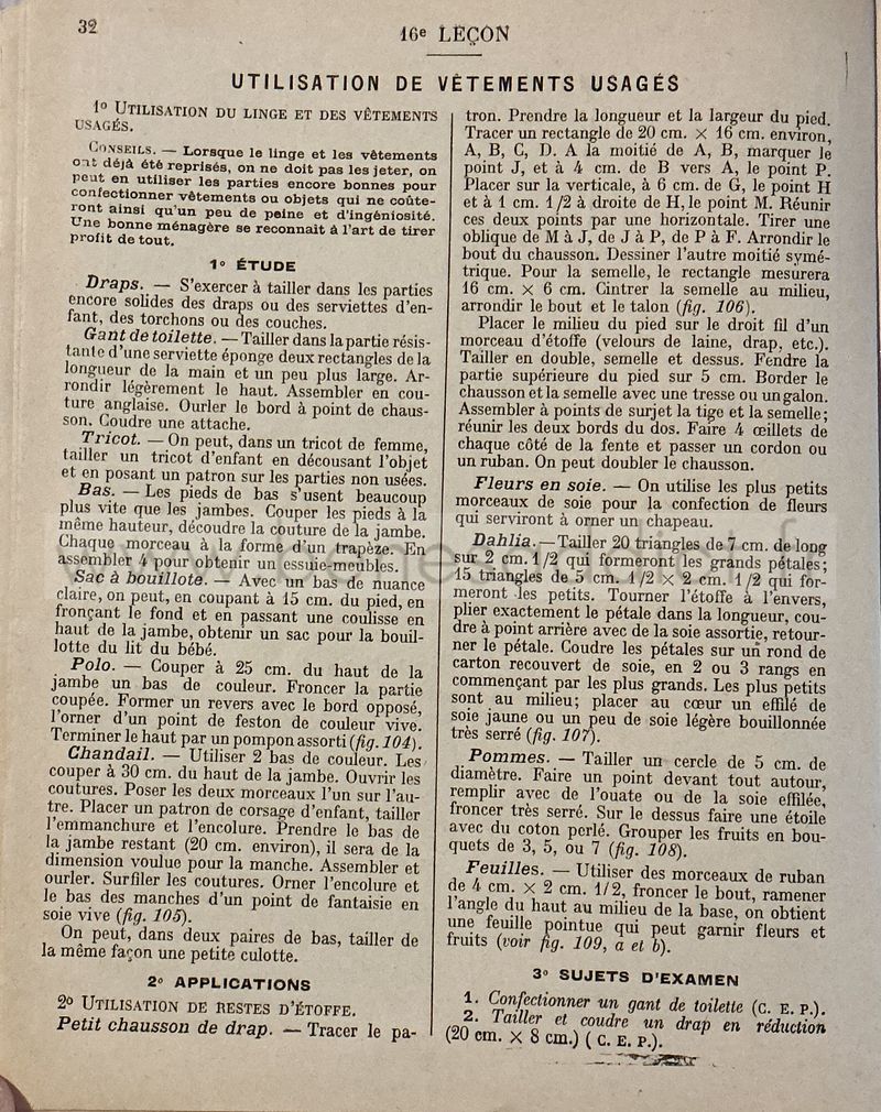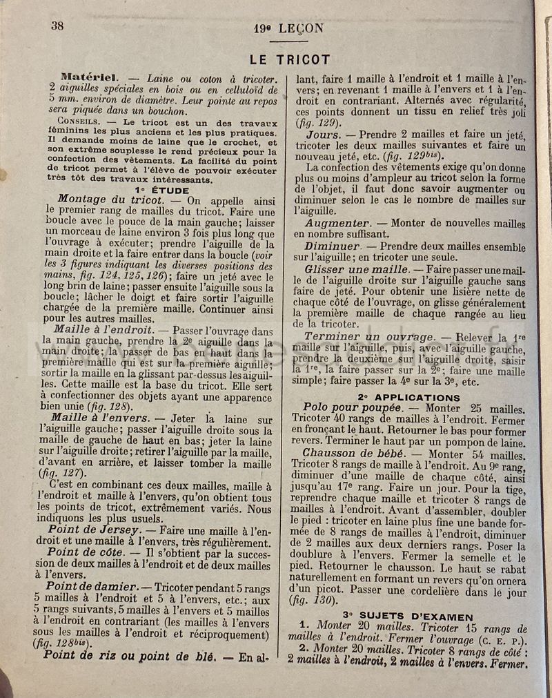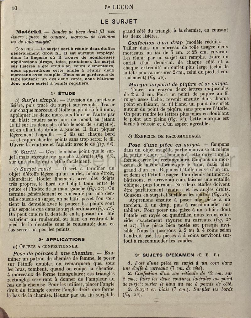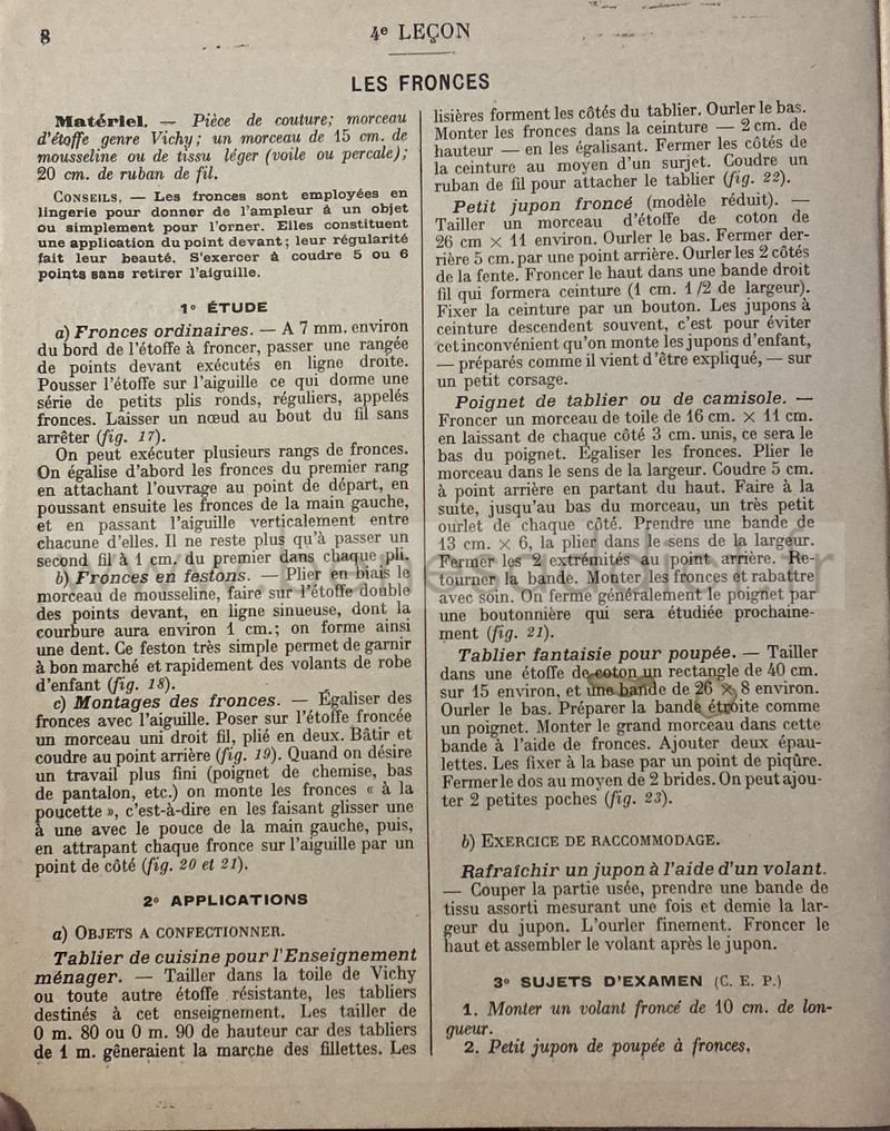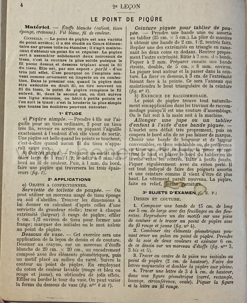 Ce manuel est conforme aux programmes scolaires français de 1923 et destiné à l’enseignement du travail manuel pour les filles au niveau du cours moyen et supérieur.