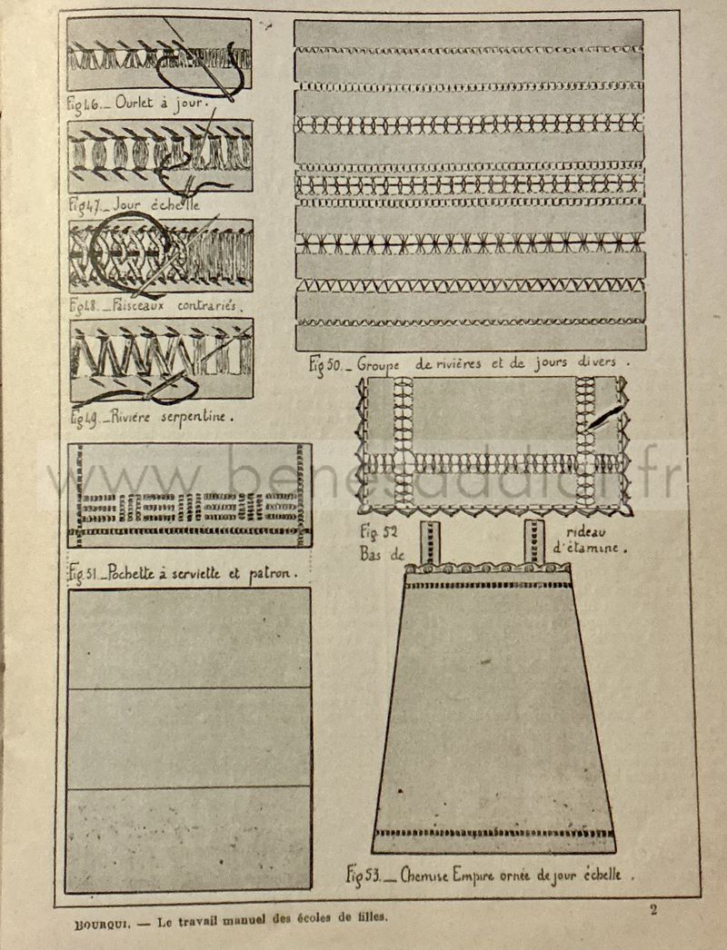 Le travail manuel des écoles de filles faisait partie d’une éducation intellectuelle et pratique, favorisant , le goût, et la préparation à la vie courante et domestique.