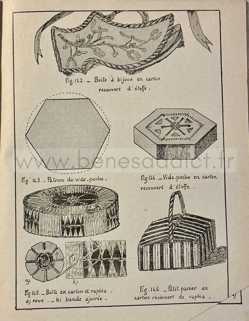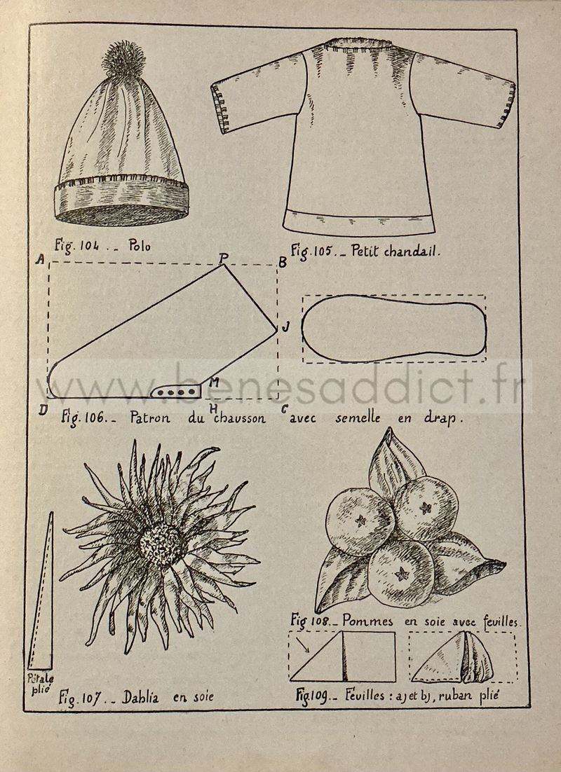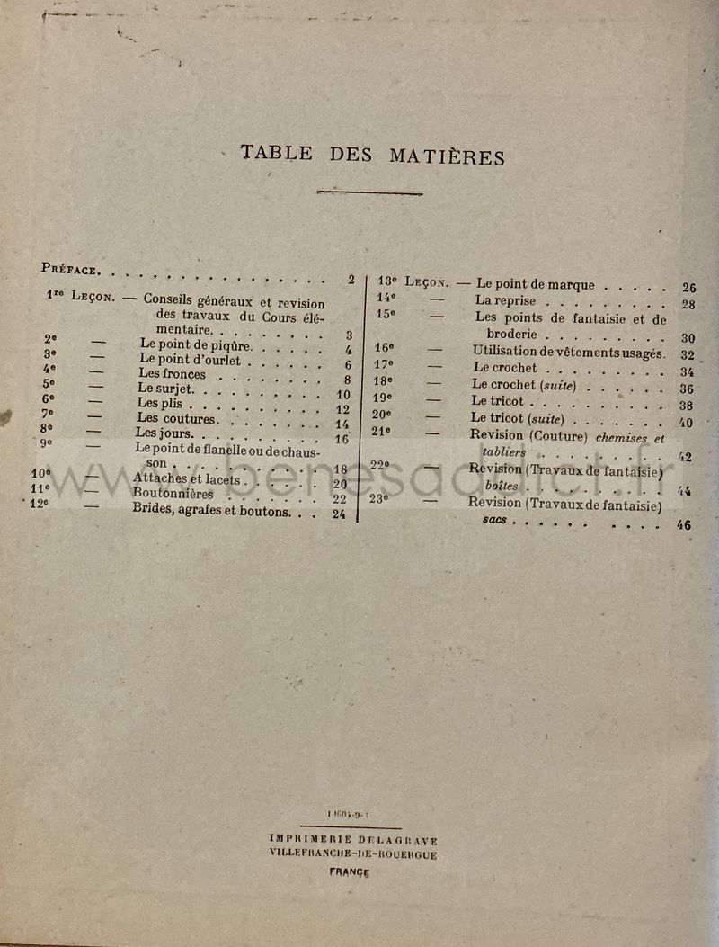 Le contenu de ce livre porte sur des activités manuelles traditionnelles enseignées aux filles à cette époque, telles que la couture, le tricot, la broderie, la coupe, et la confection d’objets pratiques et décoratifs.