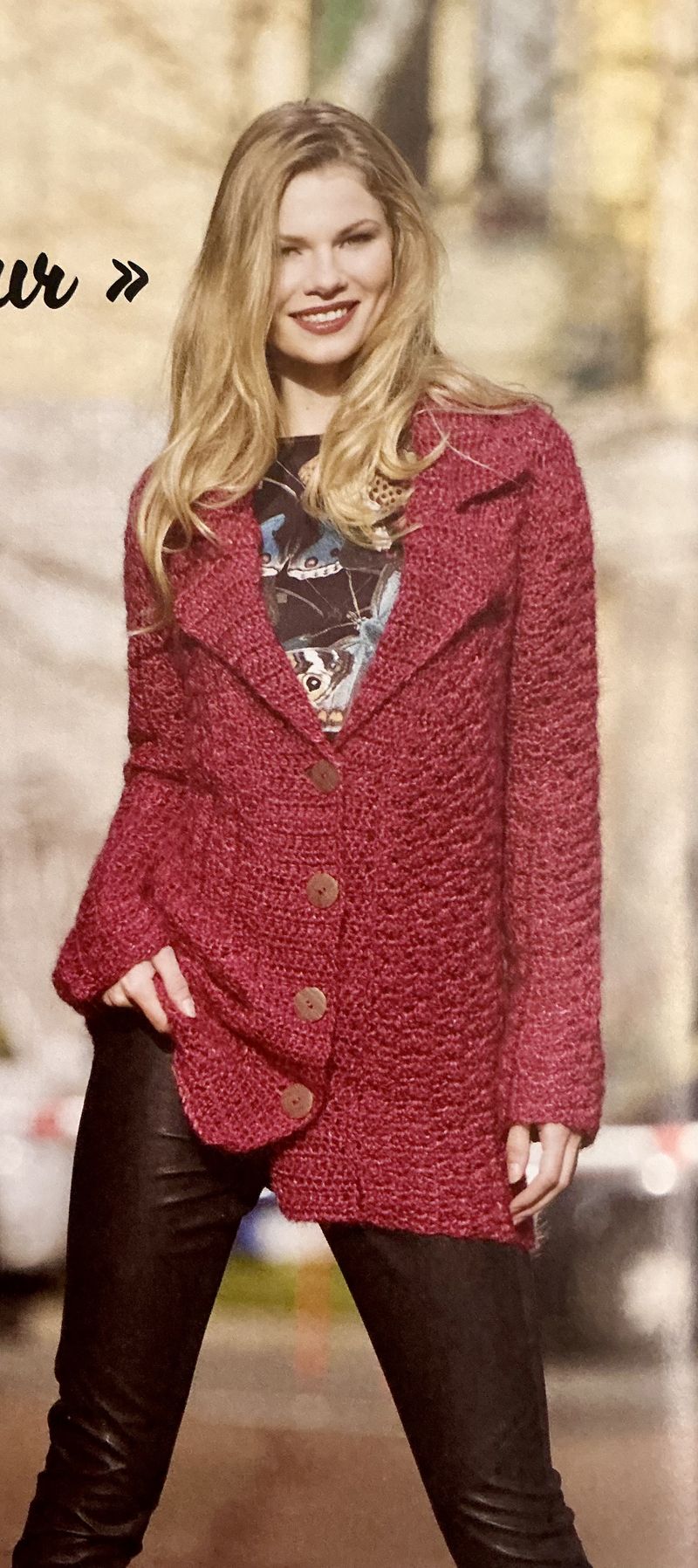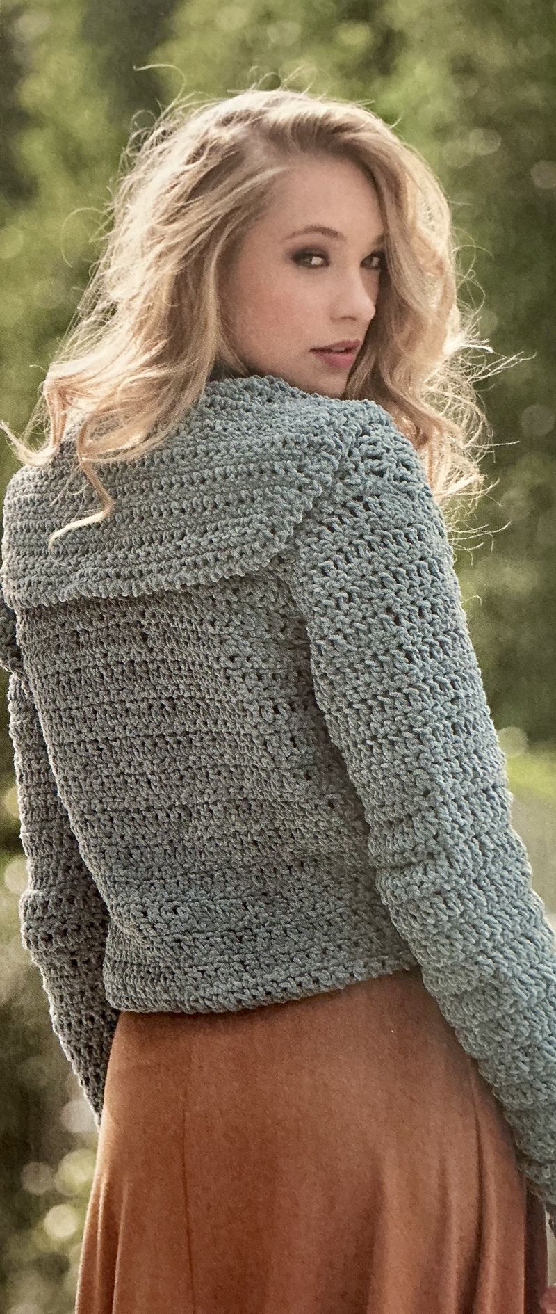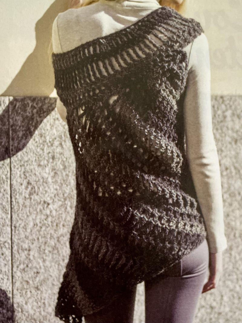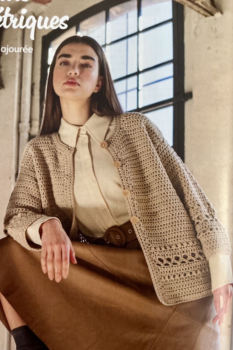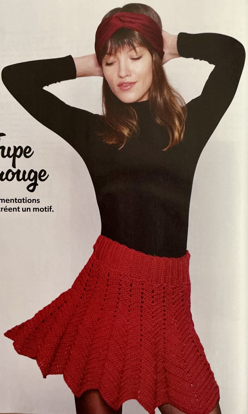 La jupe au crochet? Je ne suis pas fan du tout, mais l’idée a le mérite de ne pas être ordinaire. De plus, dans la revue, ils utilisent des fils épais, ce qui ne doit pas être agréable ni confortable. Le mouvement de la pièce doit être assez raide.