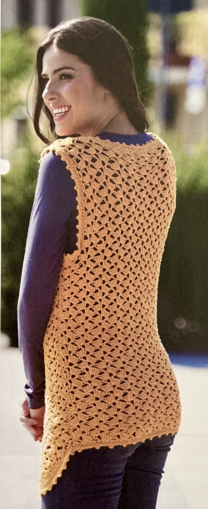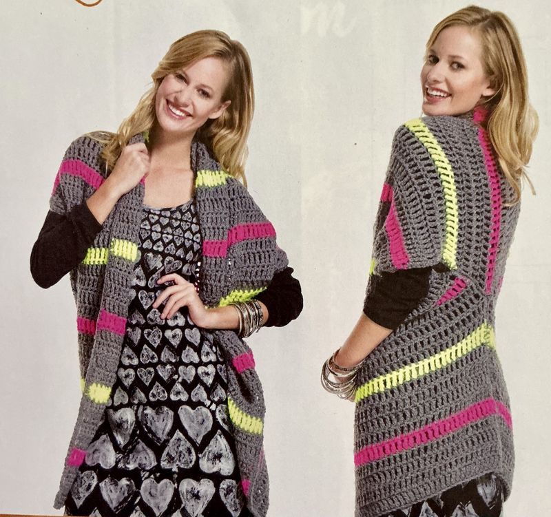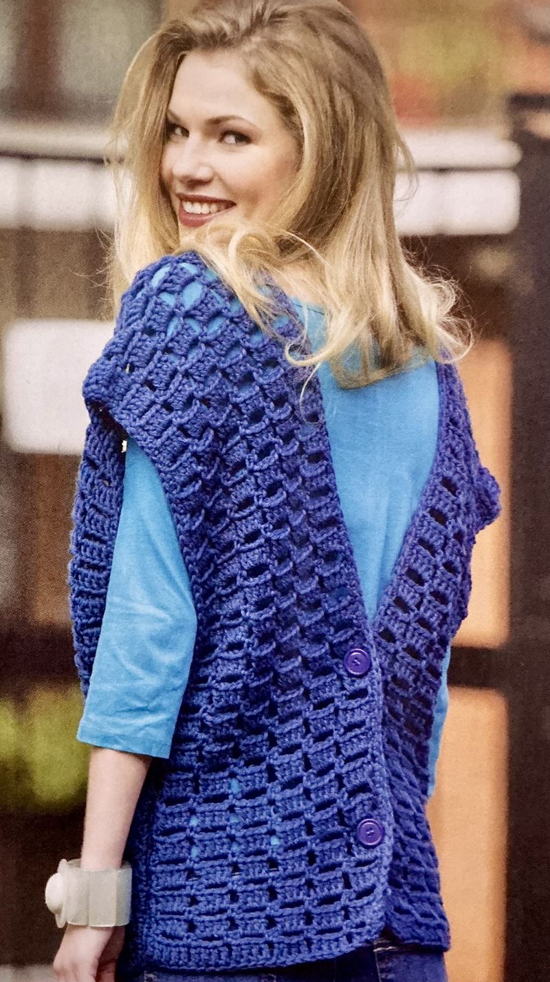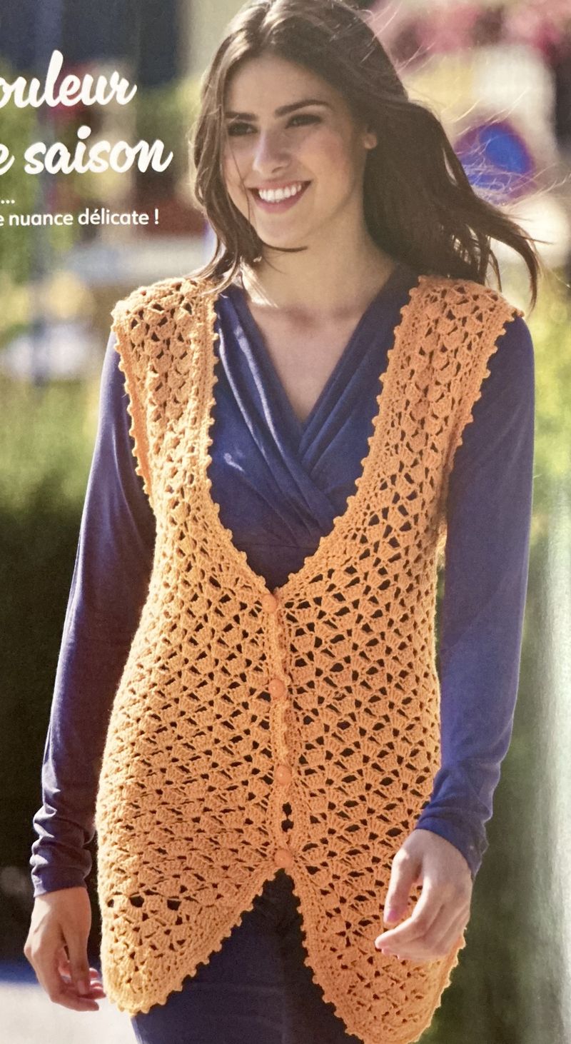 Et que peut-on crocheter pour l’automne. Avec le yoyo des températures, le gilet est un bon compromis, je trouve. C’est un peu comme le kimono de l’été. Il ajoute du charme à une tenue toute simple.