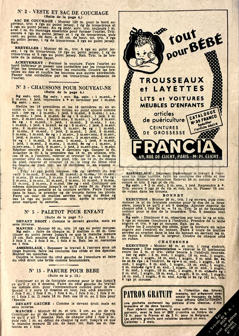 D’ailleurs, c’est généralement avec la brassière en laine pour nouveau-né que nos grand-mères apprenaient le tricot à l’école. Puis viennent le tricot des chaussons, ensuite, elles ne s’arrêtaient plus.