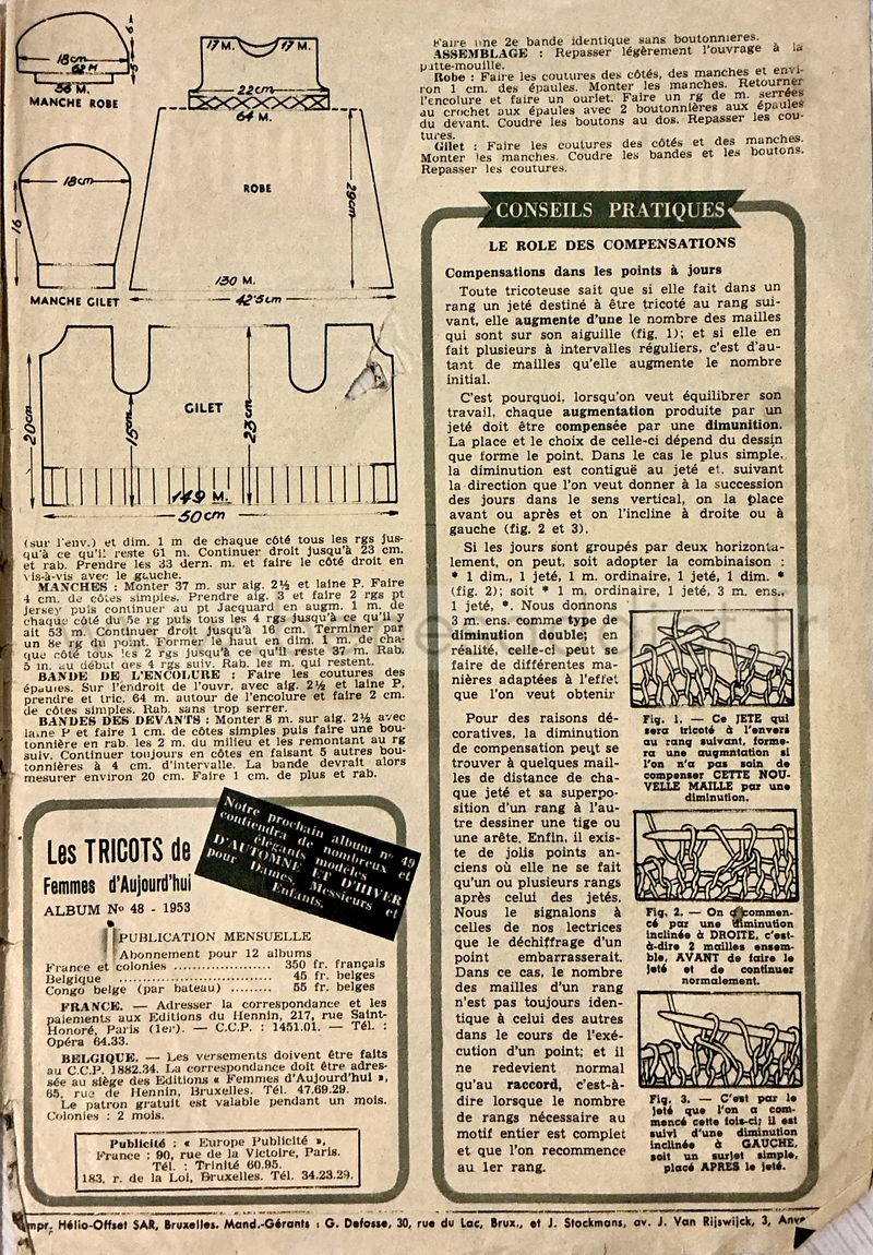 Aujourd’hui, je partage avec vous une revue tricot, datant de 1953. Il s’agit de l’album n° 48 de l’année 1953.