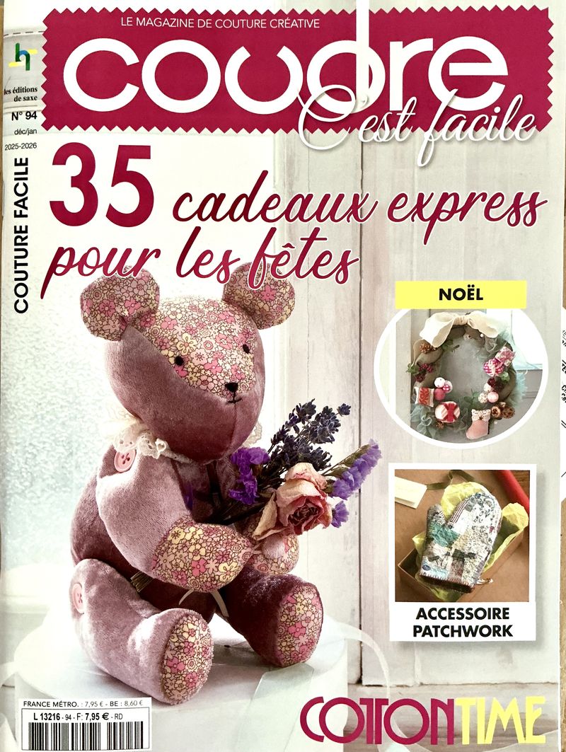 Mais si vous cherchez des cadeaux express à confectionner pour Noël, le dernier numéro de « Coudre C’est Facile N° 94 » va vous plaire. Il contient 35 modèles variés pour offrir ou se faire plaisir.