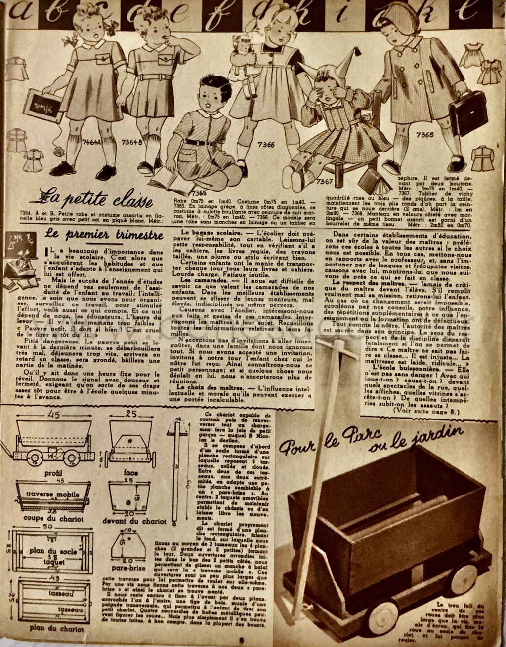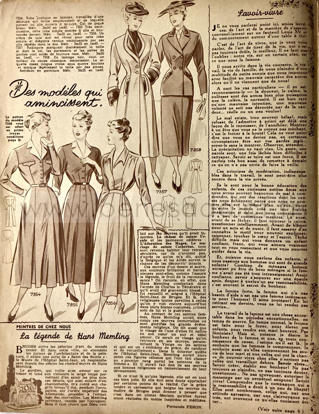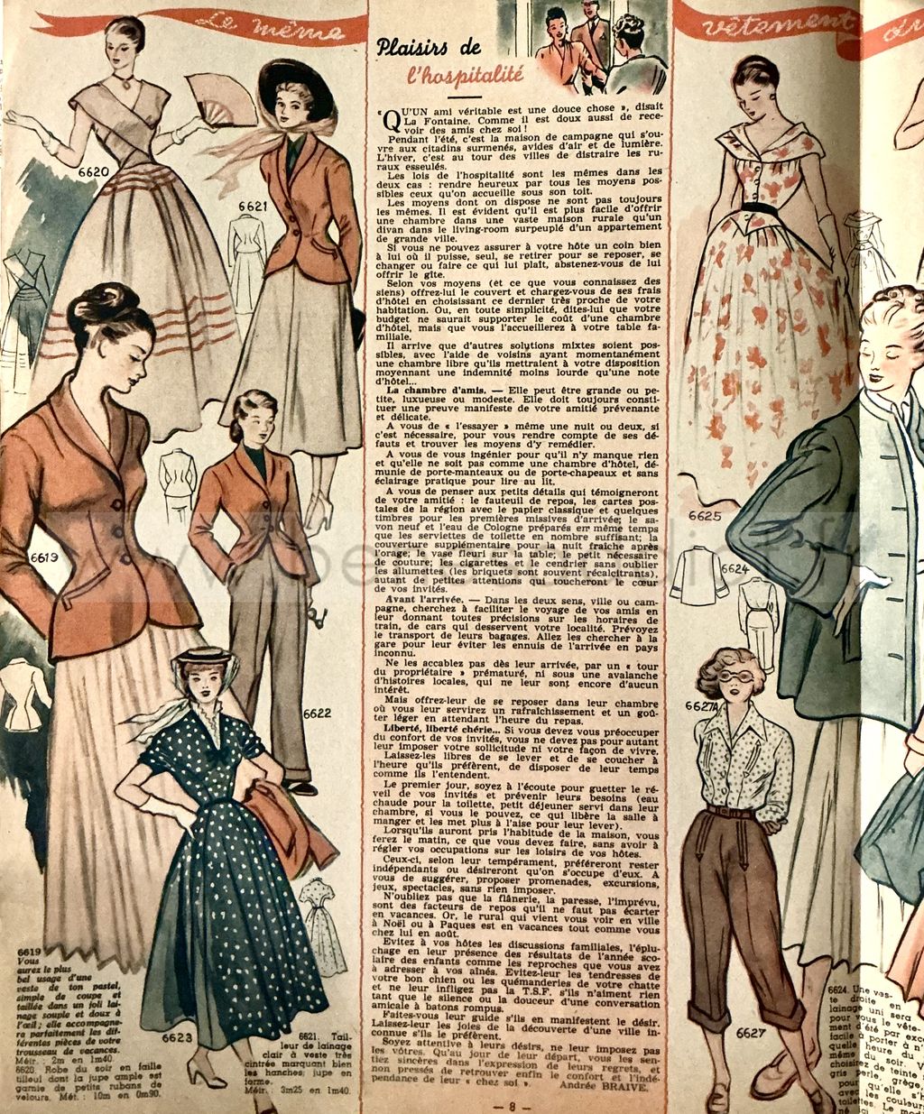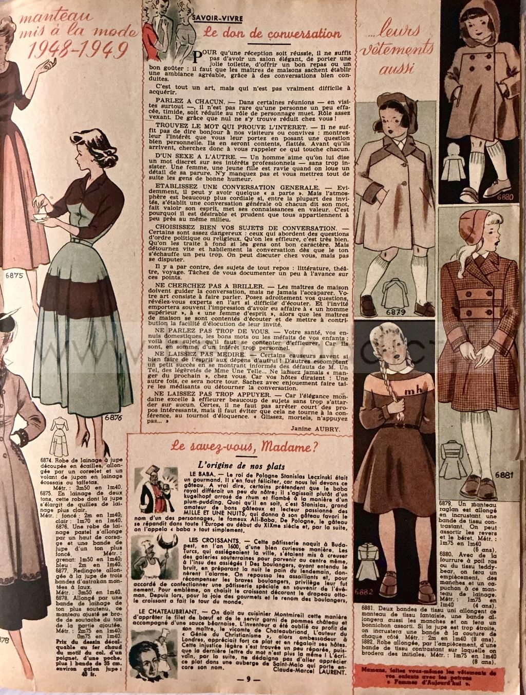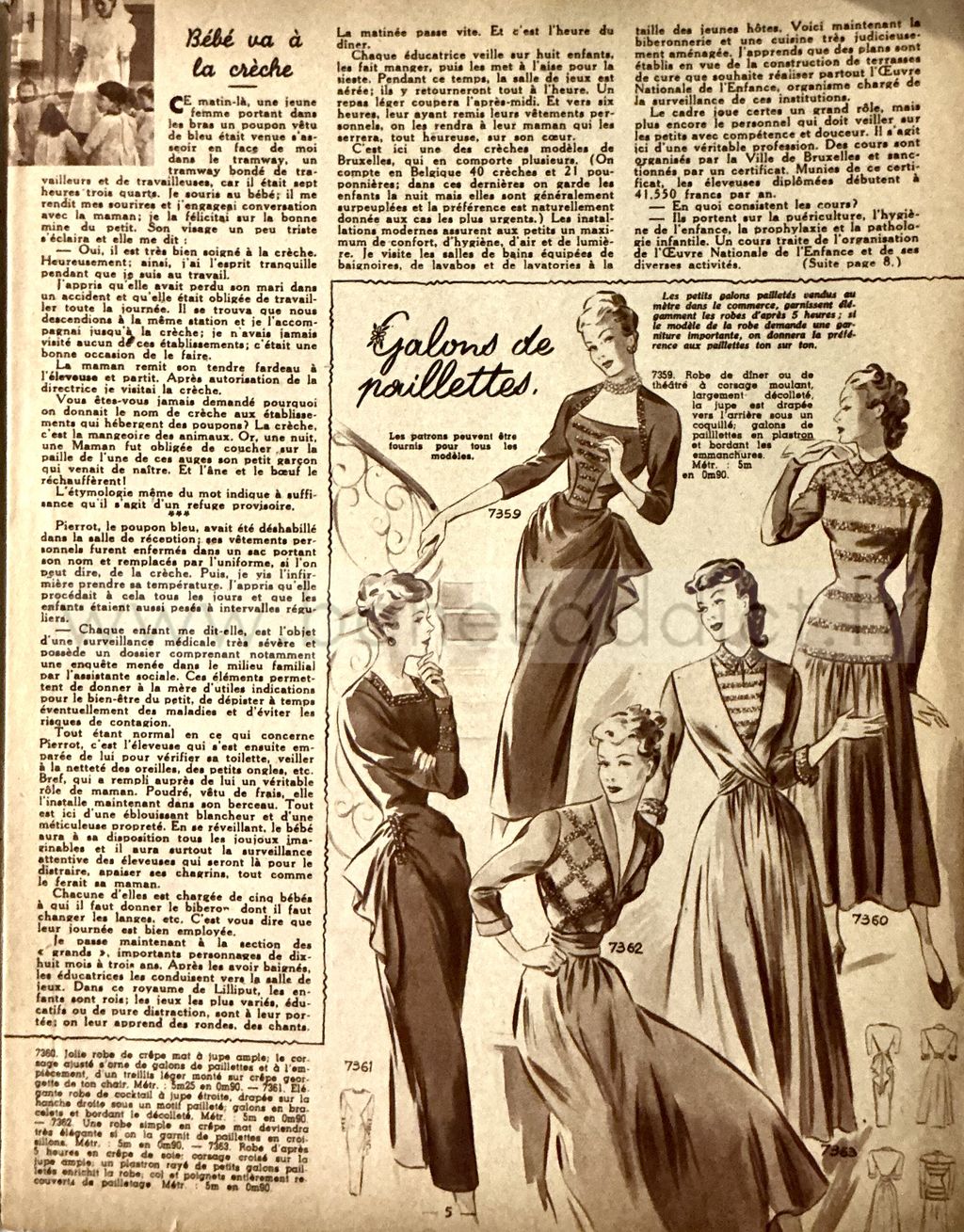 Ces pages jaunies que je partage ici mentionnent une garde-robe dernier cri, des astuces salle de bains, mais aussi une chambre d’enfant cosy et même des napperons crochetés. Ce ne sont pas de simples images vintage. Elles capturent l’essence d’un quotidien avec lequel chaque femme transformait des chutes de tissu en jupes plissées ou en napperons impeccables, suivant les patrons découpables insérés dans le magazine. Pour nos aïeules, post-crise de 1930 et après-guerre, c’était la survie : ravauder chaussettes, recycler robes démodées, égayer la table roulante avec trois fois rien.