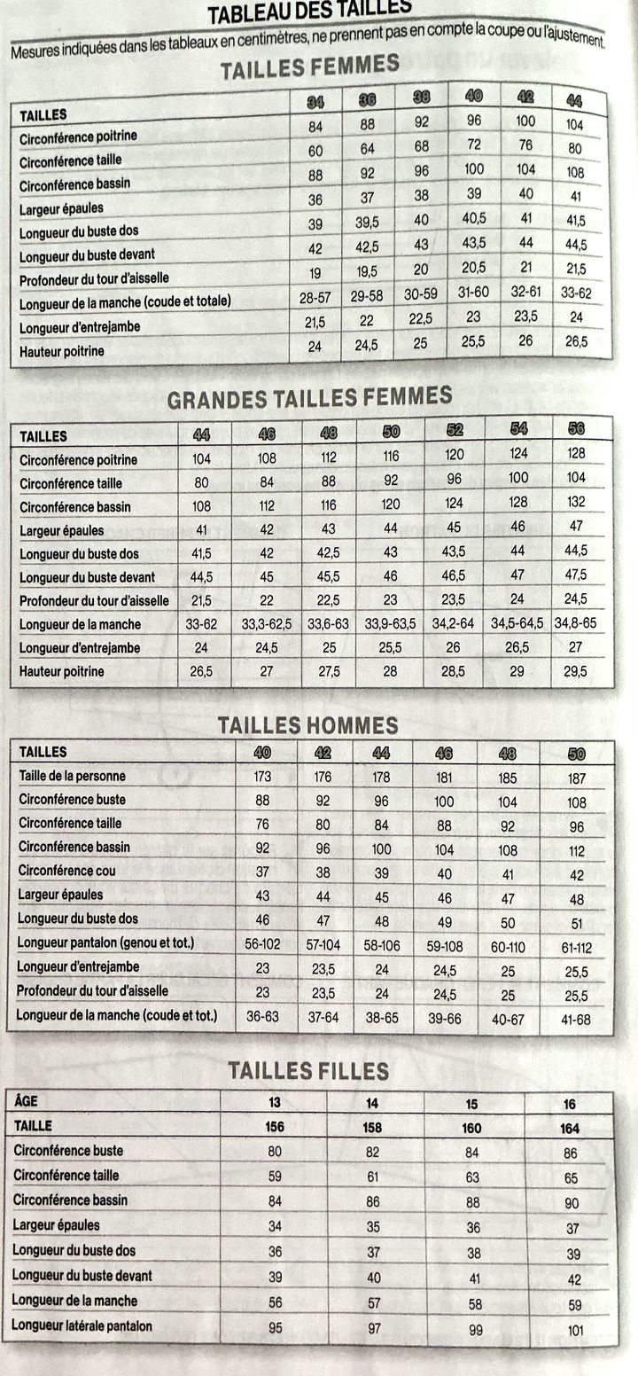Le tableau des tailles