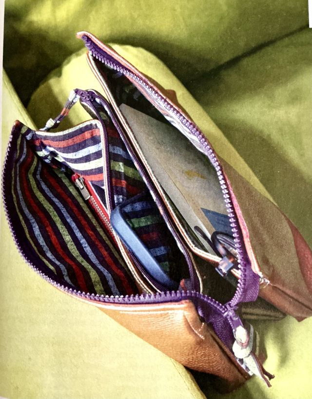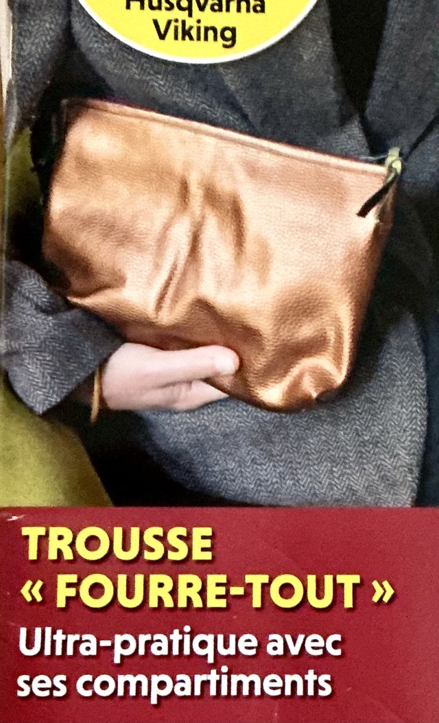 J’aime beaucoup la trousse de couverture. Elle comporte plusieurs compartiments dont un zippé. Je pense que c’est un modèle qui aurait sa place en tant que sac, peut être en agrandissant les proportions.