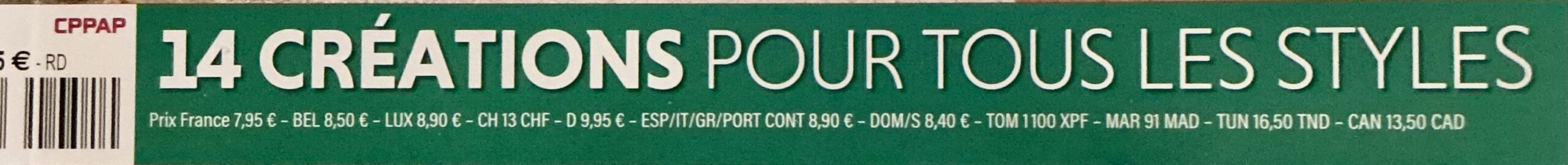Ce bandeau vient conclure la page de couverture. Il nous informe que la revue contient 14 créations pour tous les styles, et je rajouterai tous les niveau de couture.