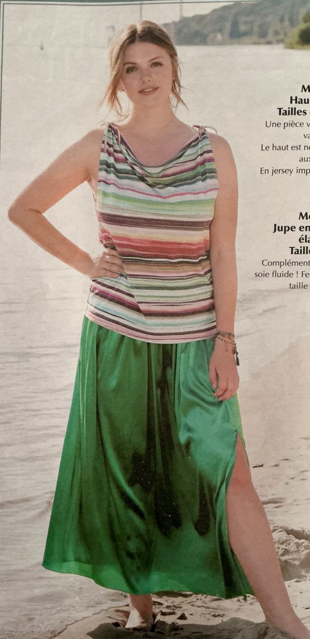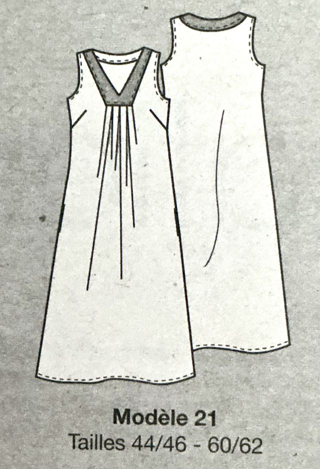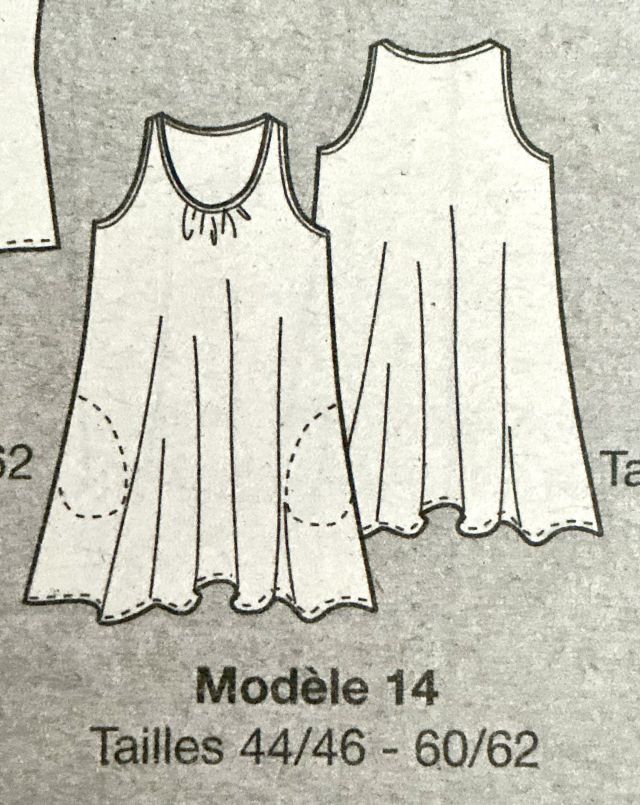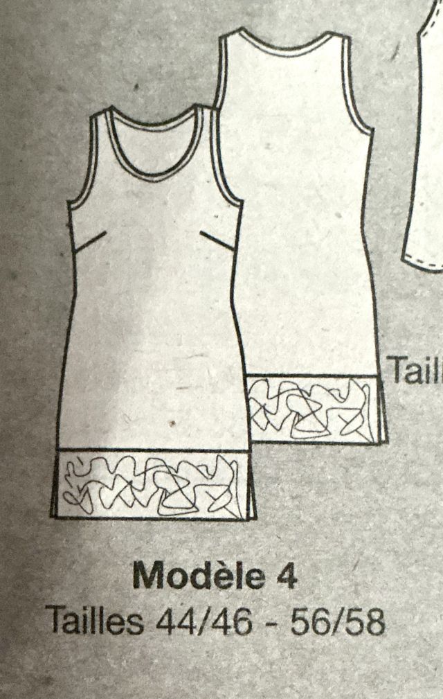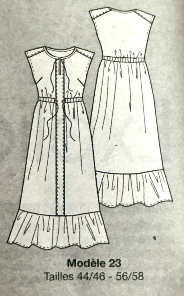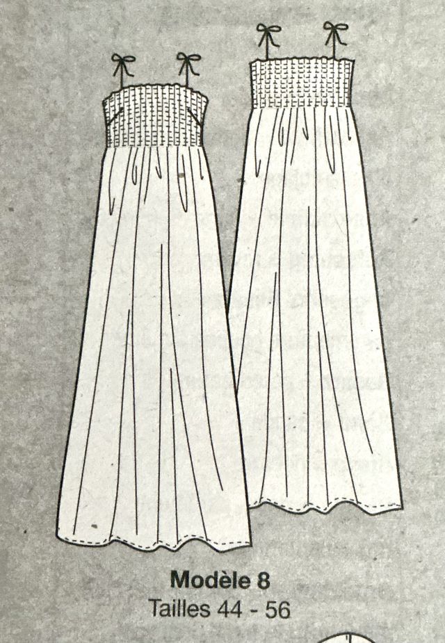 Dernier coup de cœur, je viens de regarder l’article de l’édition originale, même mes coups de cœur ont évolué. Ici, il s’agit d’une robe lingerie façon nuisette, tendance des années 1998-2000. Sans découpes verticales. Avec uniquement des pinces de poitrine, et des petites bretelles, une ampleur maitrisée. Cette robe est toujours tendance.