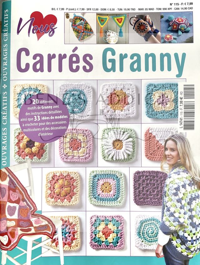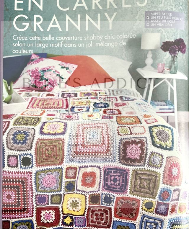 Bonjour, bonjour les crocheteuses! Vous connaissez les carrés Granny à crocheter ? C’est le thème d’une revue que j’ai découverte. Vraisemblablement ce n’est pas le premier numéro, car nous avons ici le n°115. Son prix est raisonnable puisque moins de 8 euros. C’est l’occasion d’avoir une base de données pour en crocheter de toutes sortes et de toutes couleurs. Car c’est rapide et facile à faire, donc satisfaction garantie.