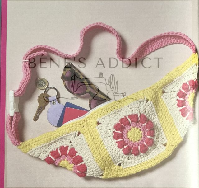 Vous n’y avez certainement pas échappé, mais c’est la mode des sacs banane. En couture, on en voit partout en magasin aussi, mais je n’en ai pas encore vu réalisé au crochet comme celui-ci. Les couleurs choisies et le contraste de ces dernières amène beaucoup de fraîcheur. La taille du fil influencera la taille de votre sac.