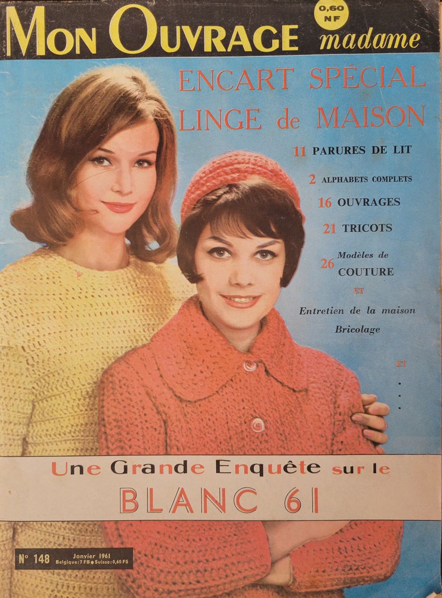 Bonjour, bonjour les créatives ! Aujourd’hui, je partage l’intégralité d’un numéro de Mon Ouvrage 1961 avec schémas zoomés. De la taille des magazines couture ou tricot d’aujourd’hui, ce titre est toujours très fourni dans tous les domaines créatifs.