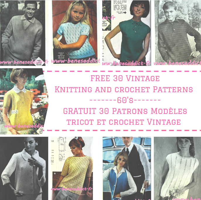 C’est chose faite avec la revue d’aujourd’hui qui contient 30 modèles de tricot/crochet datant des années 60, je n’ai pas la couverture, donc je ne peux pas être plus précise. J’en suis désolée.