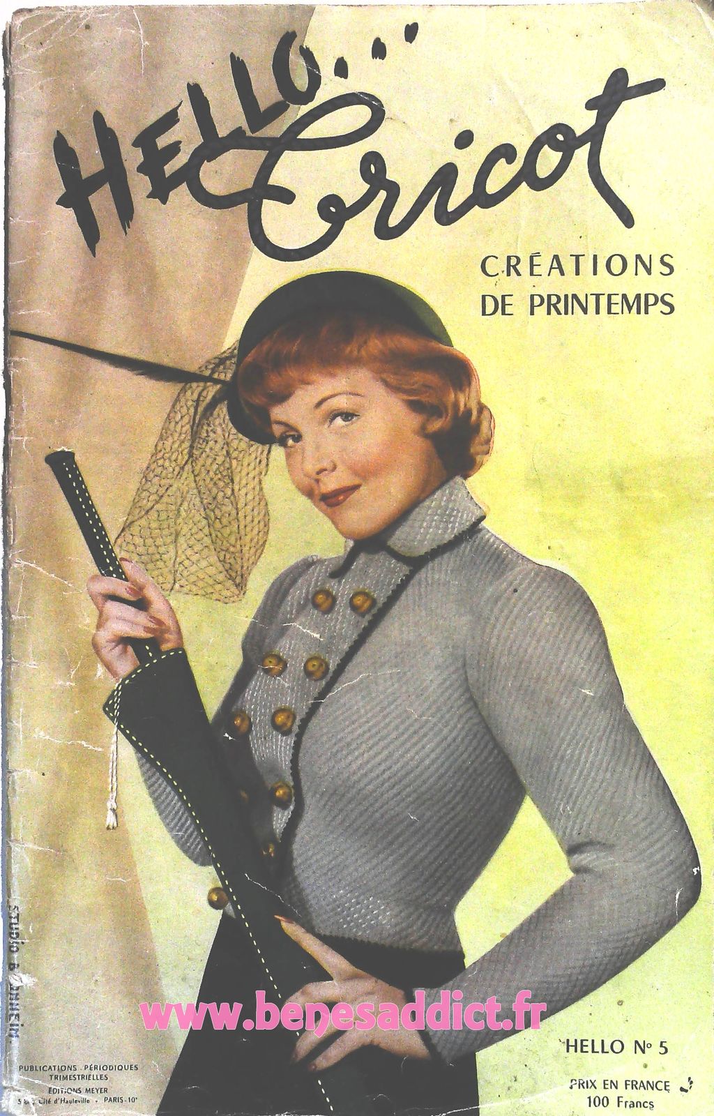 Les modèles d’aujourd’hui sont tirés de la revue « Hello Tricot » que je ne connaissais pas avant ce numéro. Il date de 1950/1951. Son contenu est riche de vêtements et d’accessoires pour toute la famille, toujours d’actualité bien entendu !