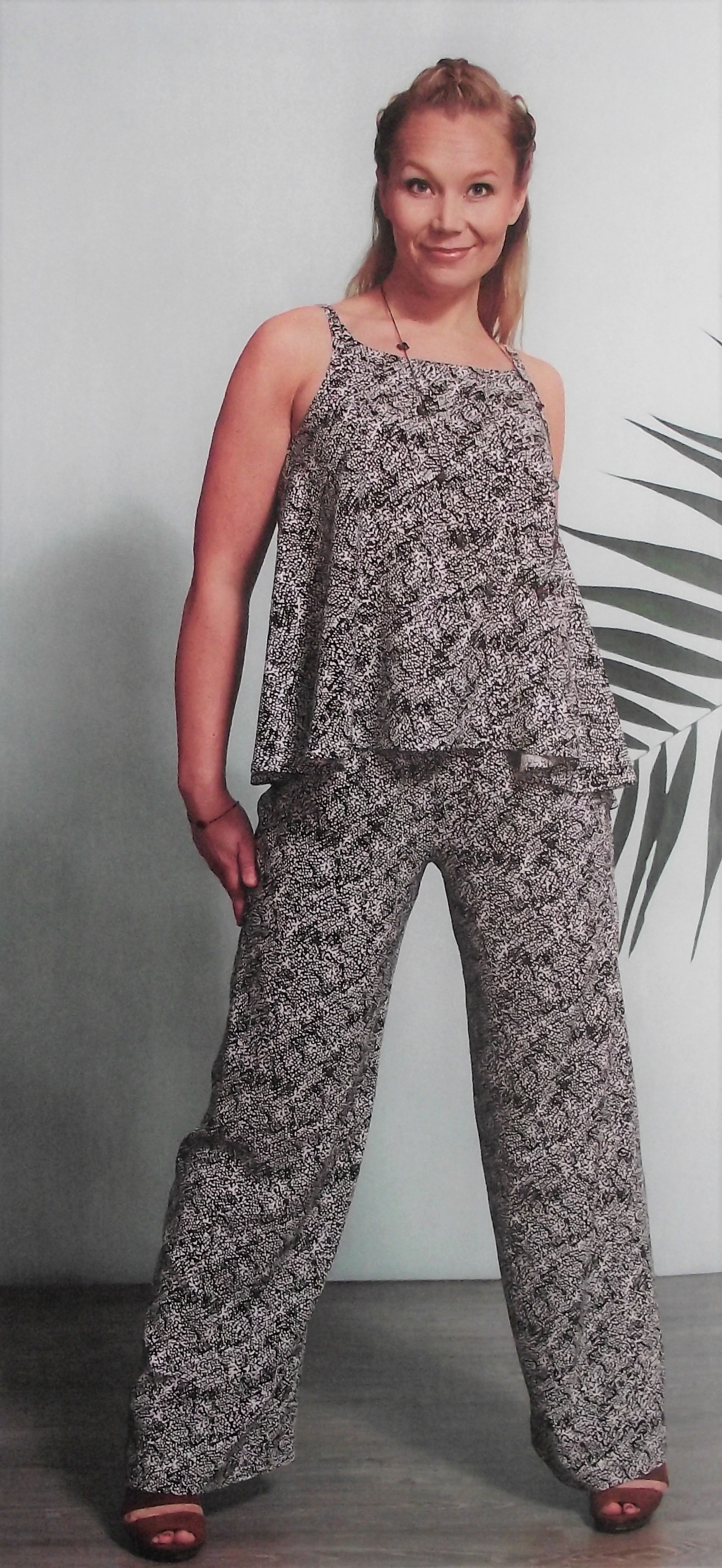 La combinaison « modèle de styliste » me plait beaucoup. Le coté vaporeux sur le haut , est je pense plus judicieux pour les femmes rondes .Le modèle à l’air d’être relativement assez facile au point de vue construction . Le résultat est simple mais très joli.