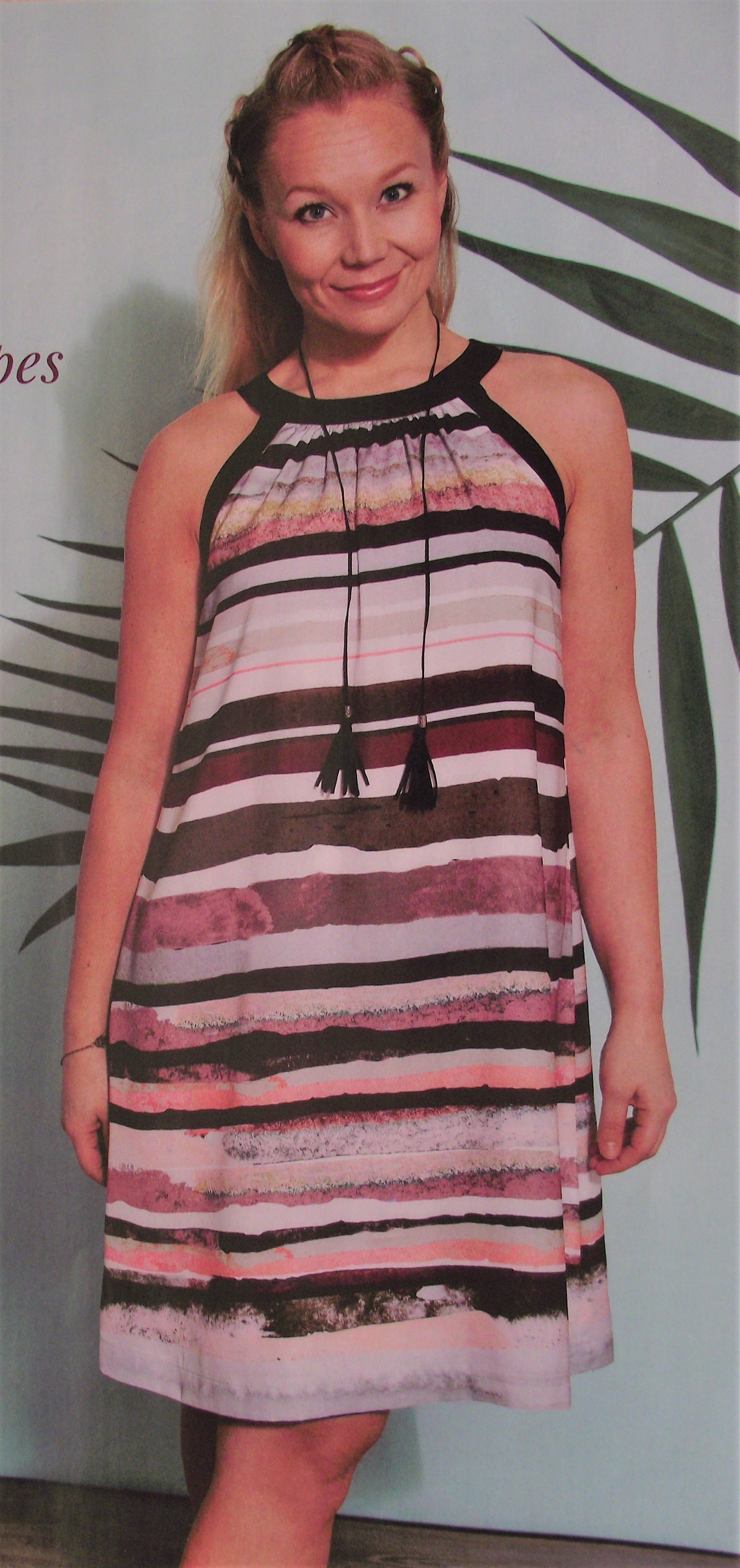 Dernier coup de cœur , cette petite robe drapée nouée . Cette coupe met en valeur le décolleté . Je suis moins sûre cependant qu’elle dissimule les rondeurs du ventre… A voir….