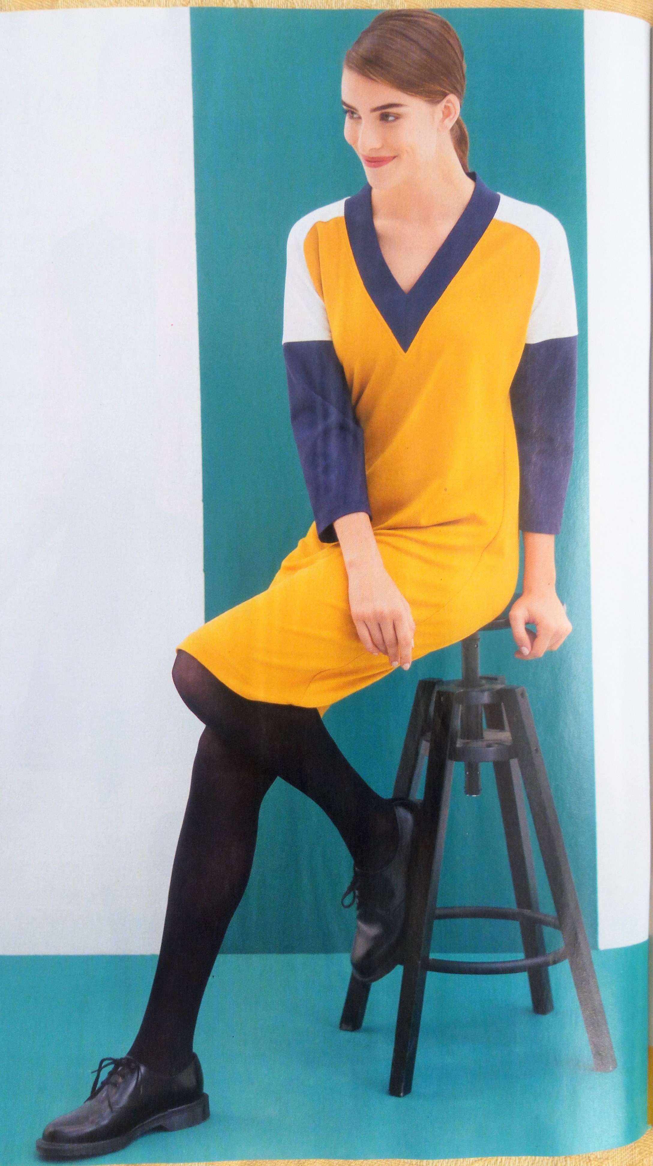 Cette robe ou en mode tunique est sympa aussi , avec ses découpes soulignées par des passepoils contrastant . On peut jouer avec les matières et les couleurs . Cette robe est idéale pour affiner notre silhouette.