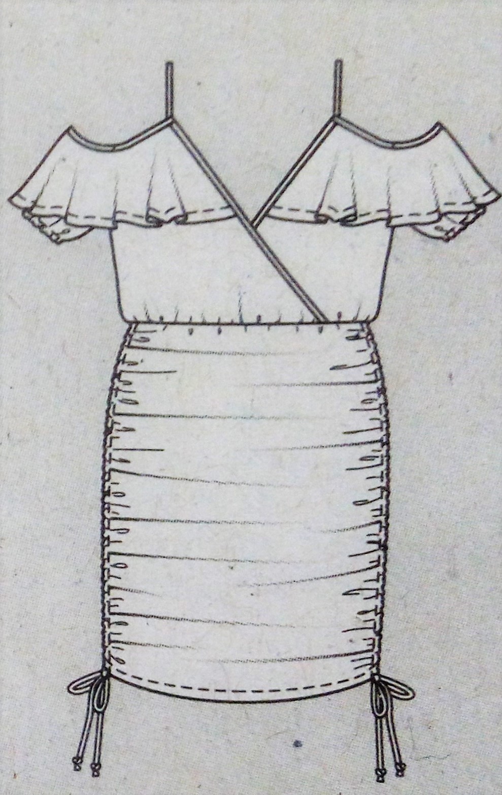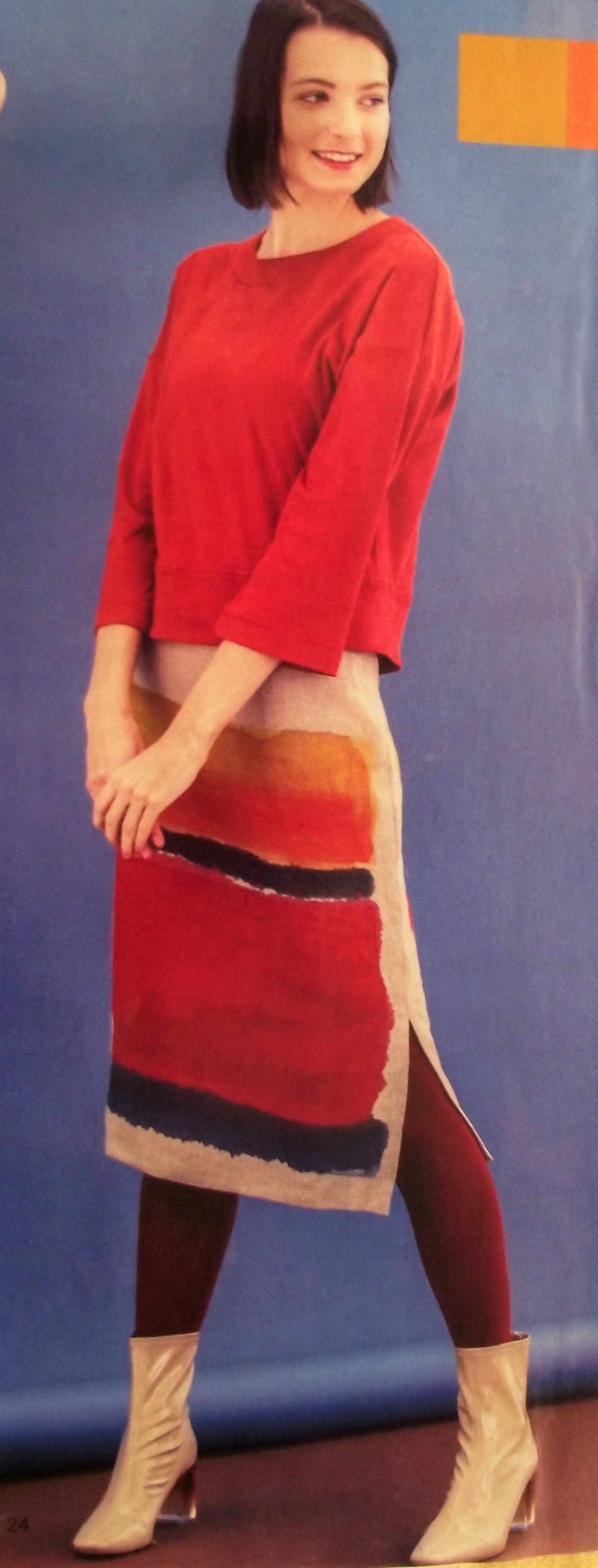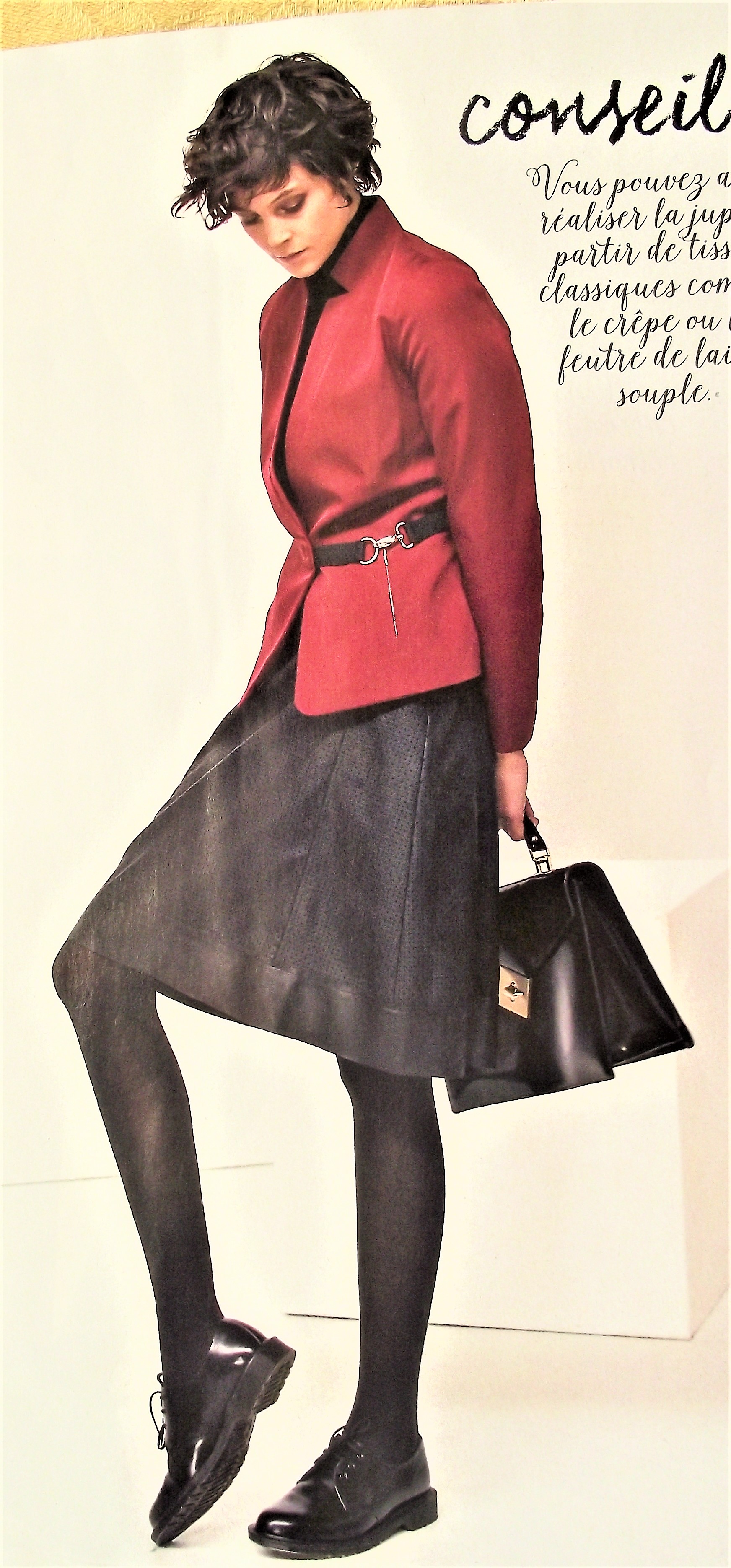 J’adore cette jupe , avec son coté plissé asymétrique . Elle a pas mal de petits détails intéressant , les petite sangles en cuir à la taille , la bretelle décorative . Je la verrai bien en coton , ou en satin lourd de couleur. Dans la revue on trouve aussi un pas a pas complet pour cette jupe. En images et textes explicatifs.