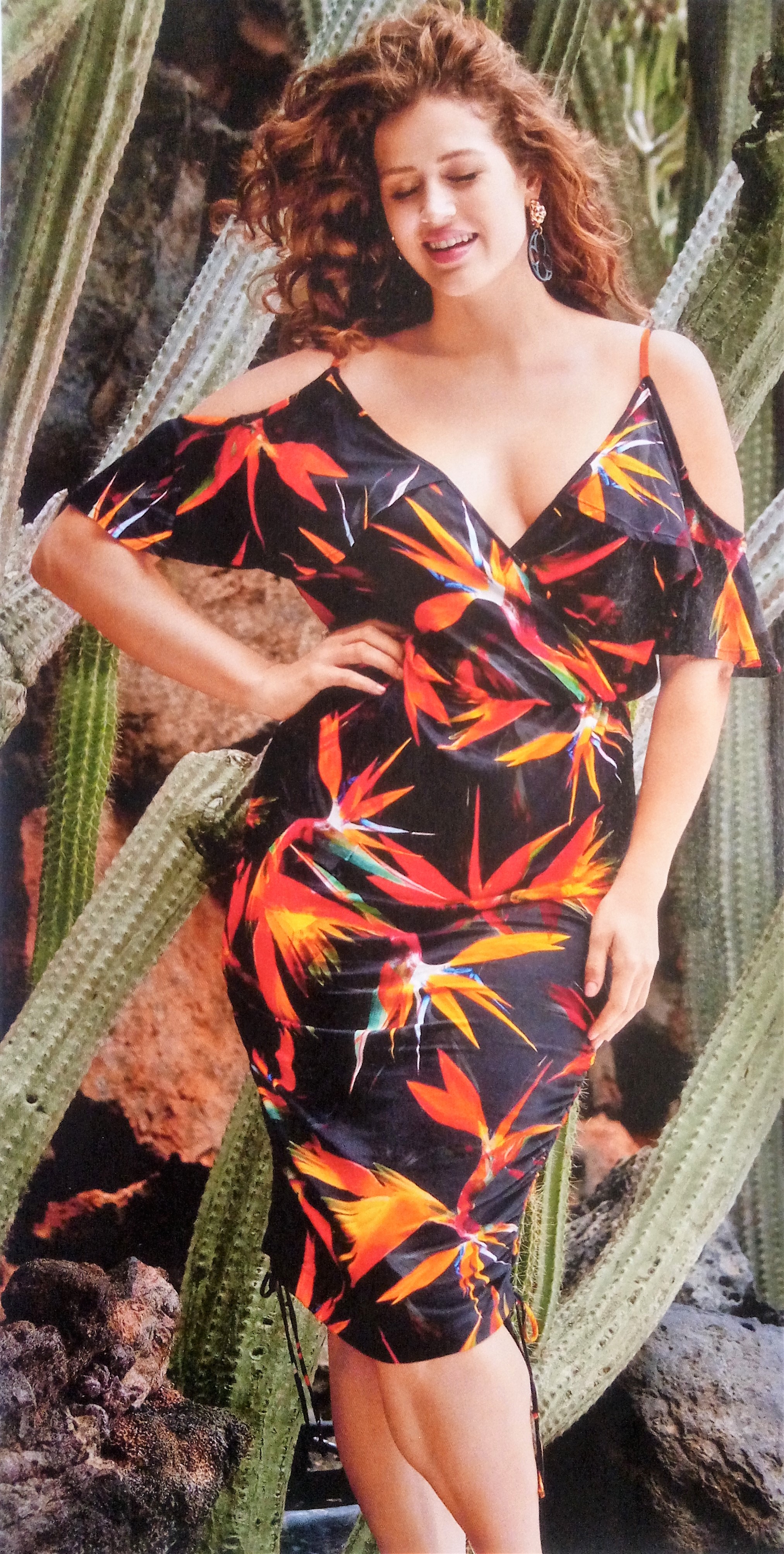 Cette robe , est un véritable coup de foudre ! L’effet cache cœur du haut , le volant , les épaules dénudées en font la grande gagnante pour l’été . Le volant cache discrètement nos bras 😉 , tout en mettant en valeur notre poitrine sublimée par le V du décolleté . C’est une superbe pièce !