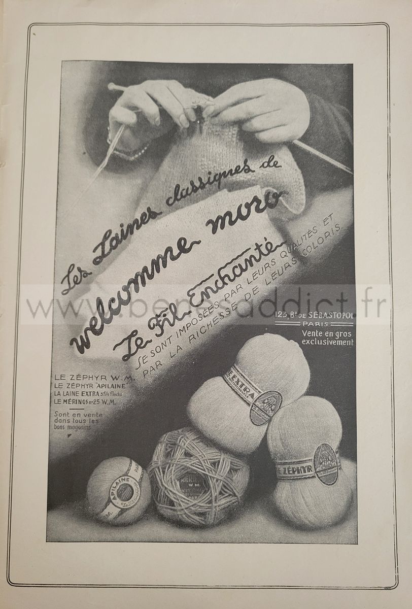 Elle s’intitule “TRICOT ET CROCHET – Modèles Nouveaux Pour Tous”, Collection AURORE n°6, une véritable pièce historique qui fera le bonheur des amatrices de travaux d’aiguilles comme des collectionneurs de documents vintage.