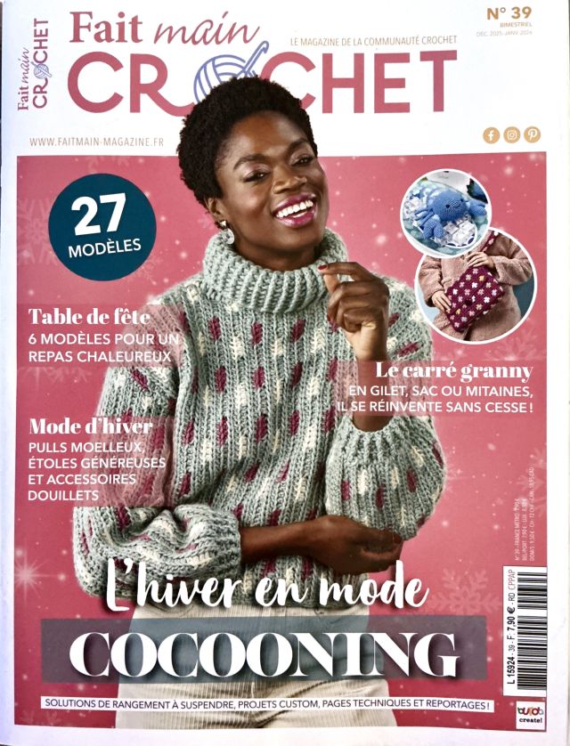Bonjour, bonjour les crocheteuses ! Découvrez ma revue de presse de Fait Main Crochet #39. Le numéro parfait pour un hiver cocooning avec ses 27 modèles dont des pulls oversize, granny/carrés faciles et accessoires douillets à crocheter. Ce magazine de la communauté crochet propose des techniques avancées pour pulls, granny et cadeaux personnalisés. Revue idéale pour débutantes et expertes en crochet. Plongez dans l’esprit cosy de cette édition automne-hiver 2025/2026 avec des patrons adaptés aux tailles généreuses et des astuces pour vos projets DIY.