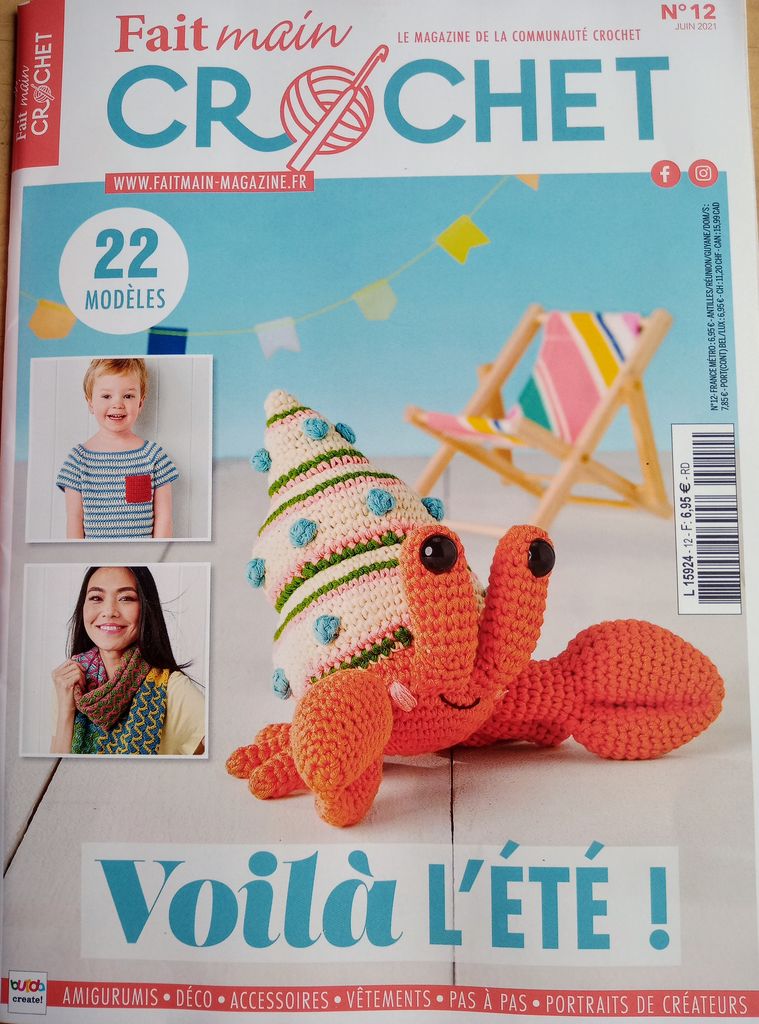 Bonjour les créatives, et les créatifs, voilà l’été si vous en doutiez! En plus c’est le thème du dernier « Fait Main Crochet n°12 ». La couverture et en appétit, avec ce superbe homard à crocheter!