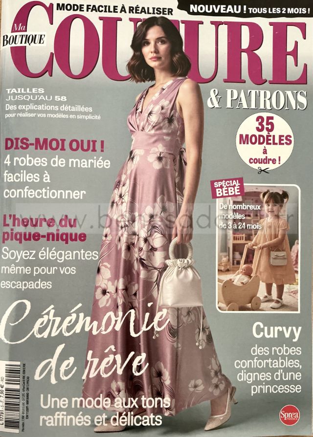 Bonjour, bonjour les couturières ! Découvrez Ma Boutique Couture Avril 2026, une de mes revues préférée du moment avec ses 35 modèles à coudre irrésistibles. En effet, elle contient quatre robes de mariée faciles et confortables à réaliser. Mais aussi des tenues pique-nique élégantes pour vos escapades avec le soleil. ATTENTION : ne l’achetez PAS sur un coup de tête en vous fiant uniquement à la couverture. Les tailles sont majoritairement petites, mais certains modèles vont jusqu’au 50. Les proches de futurs bébés trouveront des patrons du 3 à 24 mois trop mignon. Lisez mon article objectif avant d’acheter.