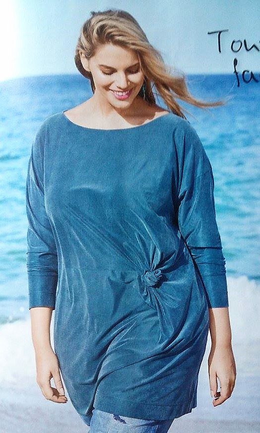 On continue dans les couleurs de l’été ,ici avec le bleu océan . On s’imagine à la plage , en bord de mer …. Avec les robes longues et tuniques à volants jusqu’au 52 . J’ai hâte de voir tout ça !