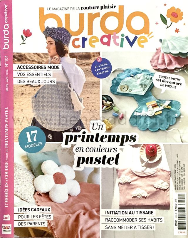 Bonjour, bonjour les couturières ! Burda Creative Mars 2026 est sorti. Mars/Avril 2026 numéro 101 plutôt. Il contient 17 patrons d’accessoires pastels printaniers de toutes sortes (pochons, sacs cabas, sets couture nomade, tapis jeu enfants…) Ce numéro est parfait pour essentiels accessoires mode des beaux jours et des cadeaux parents. Initiation tissage incluse, mais zéro vêtement comme toujours dans Burda Creative : du mignon rapide pour débutantes.